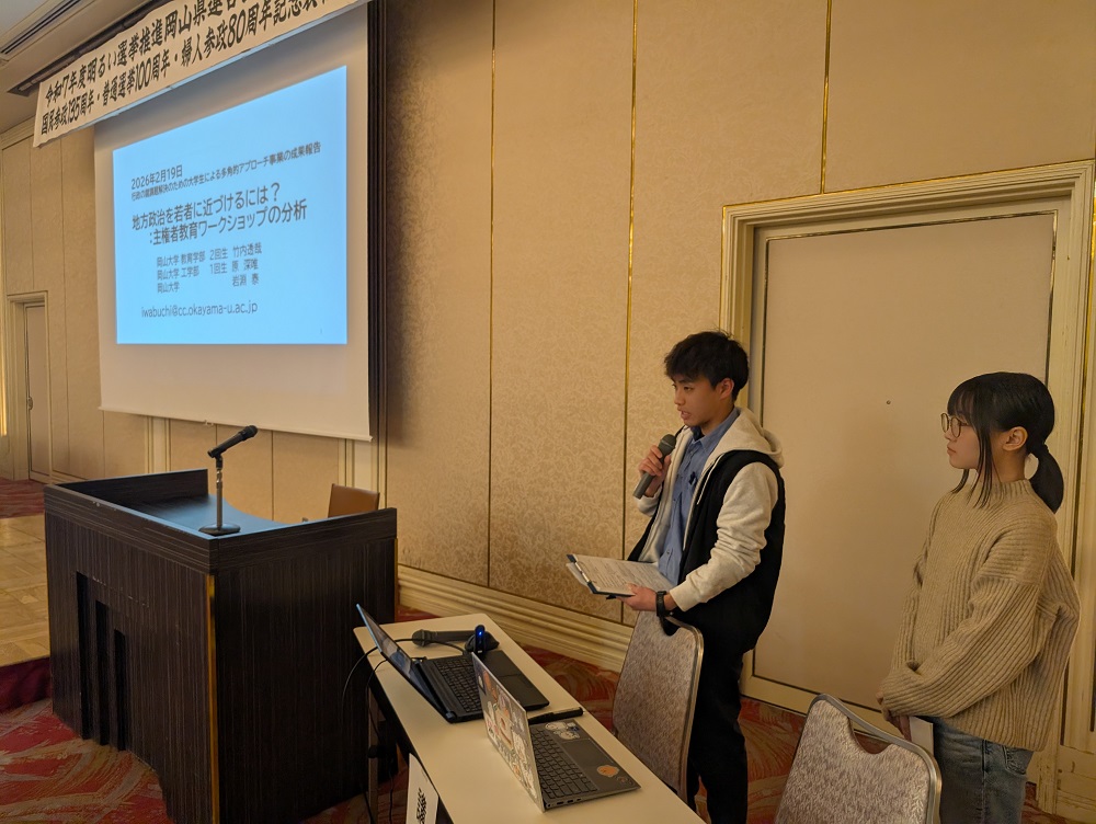 持続可能な社会の形成が求められる中、未来を担う若者や女性の参画が十分とはいえない状況が課題となっている。こうした背景を踏まえ、教員と学生が連携し、代議制と市民参画の双方を活かした新たな民主主義のあり方について、地域の視点から分析・検討を進めてきた。
