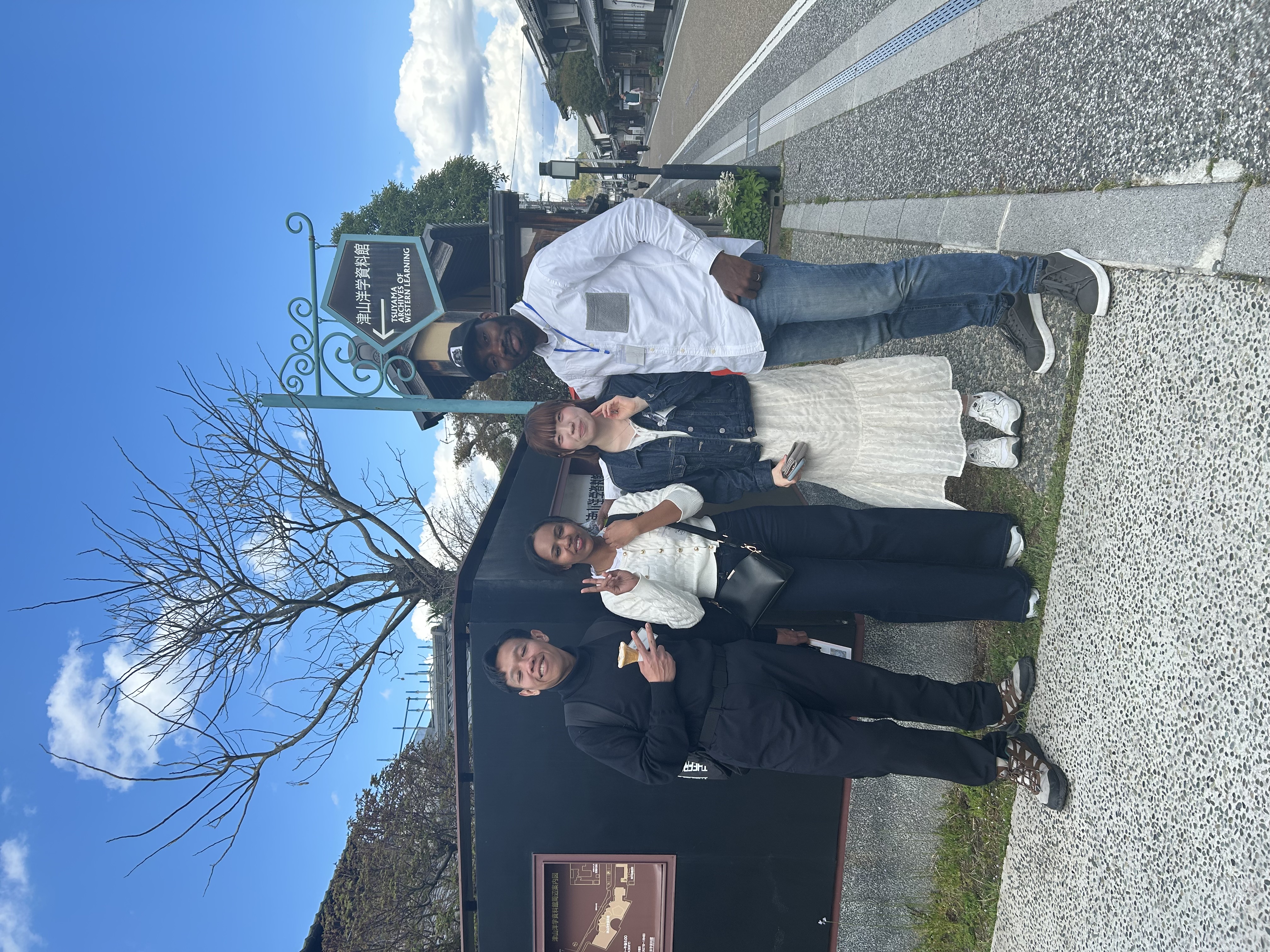 4月5日に鹿田Learning Communityは、津山市において花見交流プログラムを実施し、インドネシア、バングラデシュ、ポーランド、ガーナ、ハンガリー、エルサルバドル、日本、中国、ミャンマー出身の計17名の学生が参加した。本活動は、異文化理解、体験型学習、学生間の交流促進を目的とし、主にSDG4(質の高い教育)に貢献するものである。
